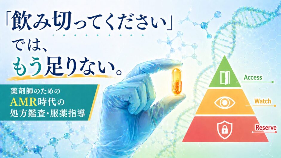 薬剤耐性(AMR)は、いまや国際的な医療課題です。WHO(世界保健機関)は2017年にAWaRe分類を提唱し、日本でも2024年度の診療報酬改定で「抗菌薬適正使用体制加算」が新設されました。薬剤師は処方鑑査・疑義照会・服薬指導のすべての場面で、適正使用の最前線に立っています。