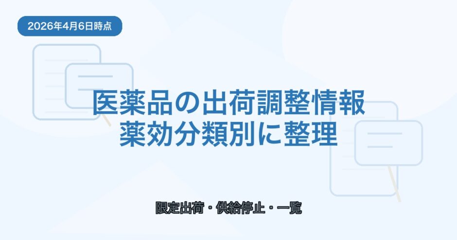 この記事では、2026年4月6日公表の厚生労働省「医療用医薬品供給状況」一覧をもとに、薬効分類ごとに出荷調整情報を整理します。あわせて、最新の月次集計として2026年2月分の概要も参照し、全体像と現場での見方をまとめます。