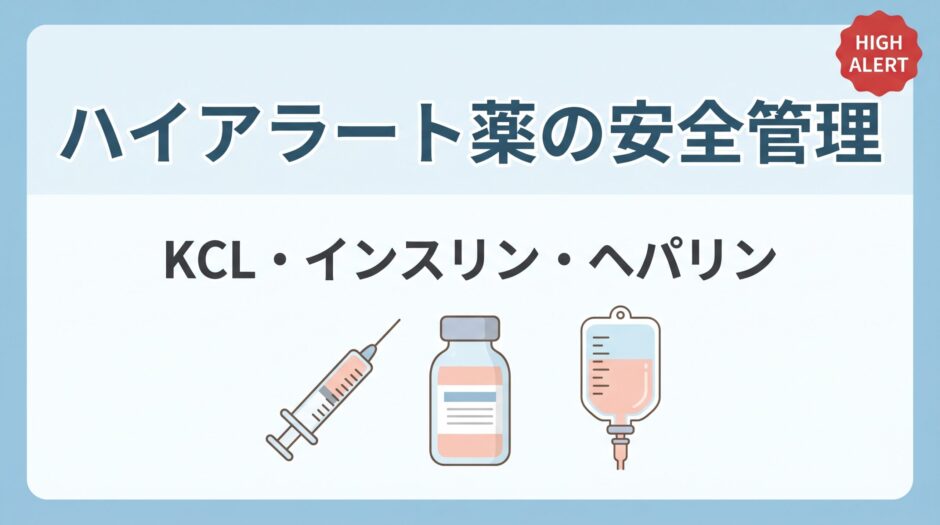 ハイアラート薬(高注意薬)は、投与エラーが起きたときの患者への影響が重大な薬剤群です。なかでもKCL(塩化カリウム)・インスリン・ヘパリンは医療事故報告の上位を繰り返し占め、国内外のガイドラインでも特別な管理が求められています。