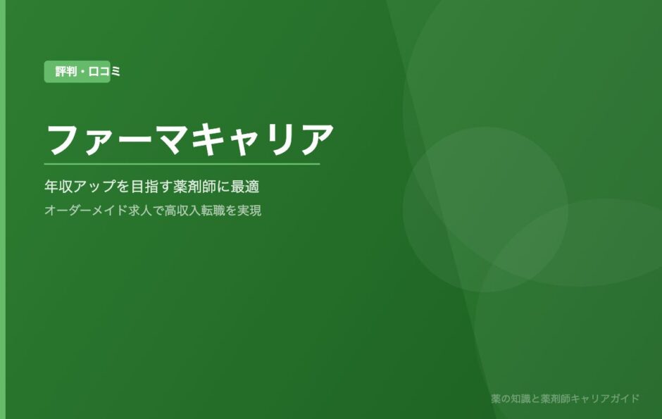 ファーマキャリアは、薬剤師専門の転職エージェントです。年収600万円以上の高年収求人を多数保有しており、収入アップを目指す薬剤師に特に高い評価を得ています。専任b担当制によるキャリアアドバイスが充実している点も大きな特徴です。