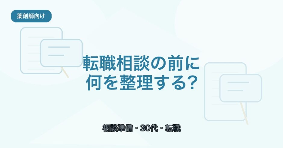 「転職エージェントに相談したほうがいいのは分かる。でも、何を相談すればいいのか分からない」「辞めたい気持ちはあるけれど、今の悩みをどう説明すればいいのかまとまらない」。30代の薬剤師さんからキャリア相談を受けていると、この段階で止まっている方はかなり多いです。