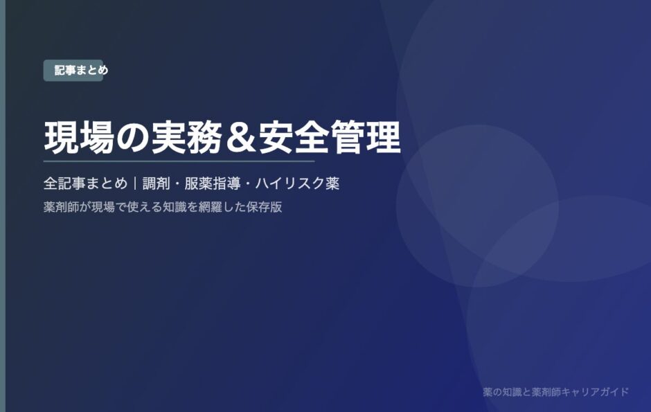 このページは、薬剤師の現場実務に役立つ記事をテーマ別にまとめたガイドページです。調剤・服薬指導・安全管理・制度対応など、日々の業務で役立つ情報を網羅しています。