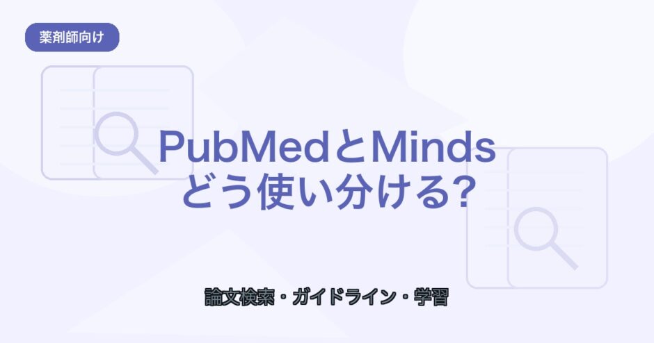 この記事では、PubMedとMindsの違い、どんな場面で使い分けると効率がいいか、調べものが苦手な人でも始めやすい手順を、薬剤師向けにやさしく整理します。