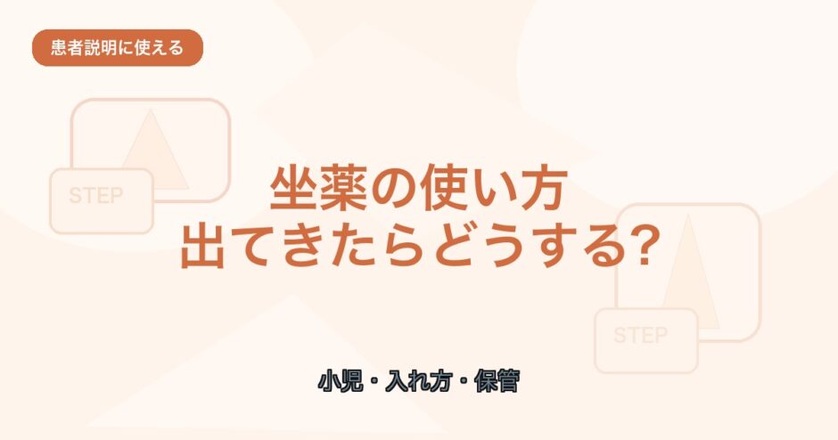 この記事では、坐薬の基本、入れ方、向いている患者さん、保管方法、入れたあとに出てきたときの考え方を、患者説明に使いやすい形で整理します。