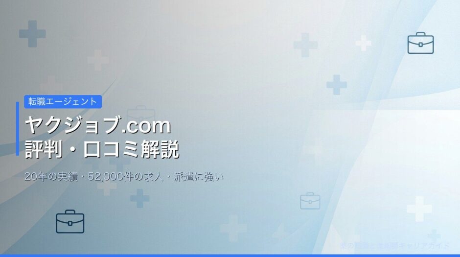 この記事では、ヤクジョブ.comの特徴・強み・評判・口コミ・向いている薬剤師のタイプをわかりやすく解説します。